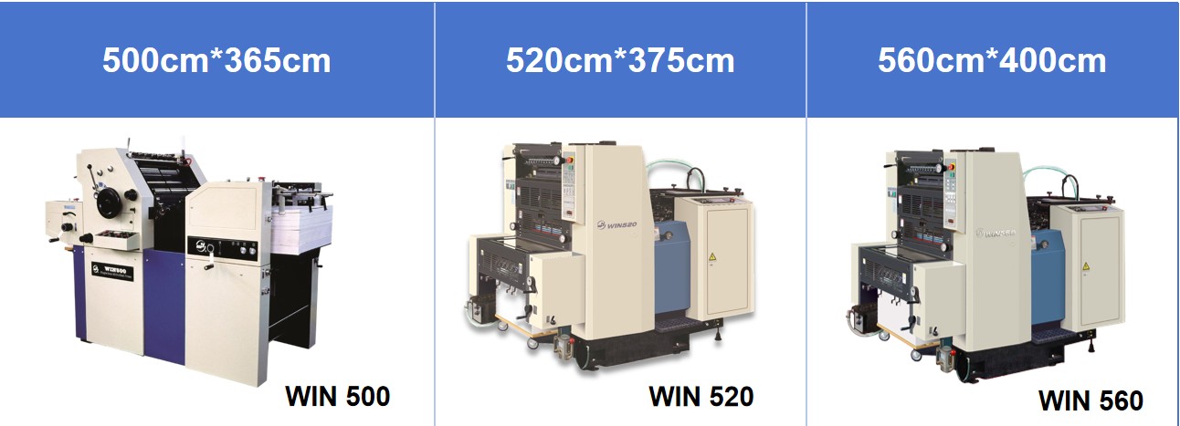 Gure kolore bakarreko offset prentsak 3 modelo nagusitan banatzen dira inprimatzeko paperaren tamainaren arabera: